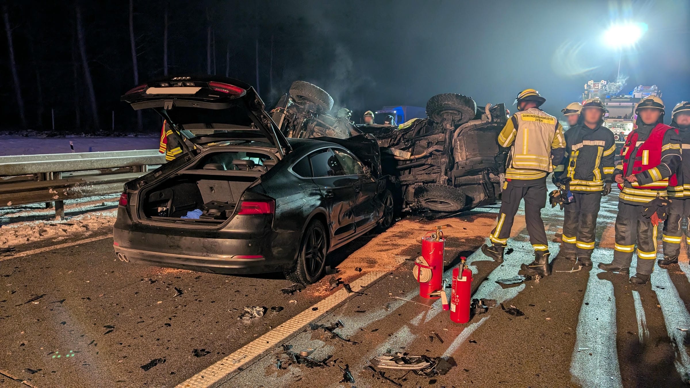 Am Abend des 05.02.2026 wurde unsere Wehr zusammen mit den Ortswehren aus Gyhum und Zeven um 21:08 Uhr zu einem Verkehrsunfall auf der BAB A1 gerufen. Zwischen den Abschlußstellen Bockel und Stuckenborstel war es in Fahrtrichtung Bremen zu einem PKW-Unfall gekommen.
