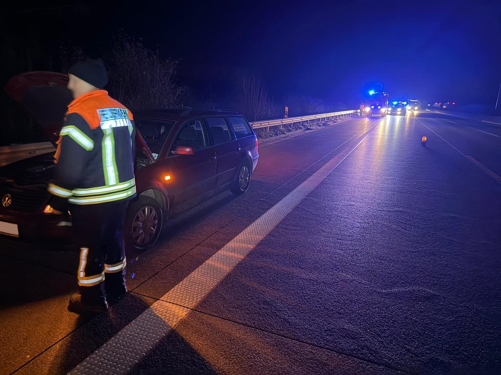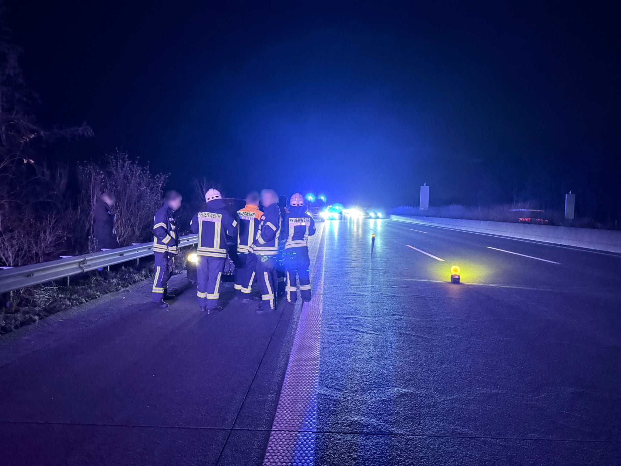 Am Abend des 10.11.2025 wurde unsere Wehr um 20:28 Uhr zusammen mit den Ortswehren Gyhum und Wehldorf zu einem PKW-Brand auf die BAB A1 gerufen. Laut erster Einsatzmeldung sollte sich in Fahrtrichtung Hamburg in Höhe des BAB Parkplatzes Hatzte ein brennender PKW befinden.