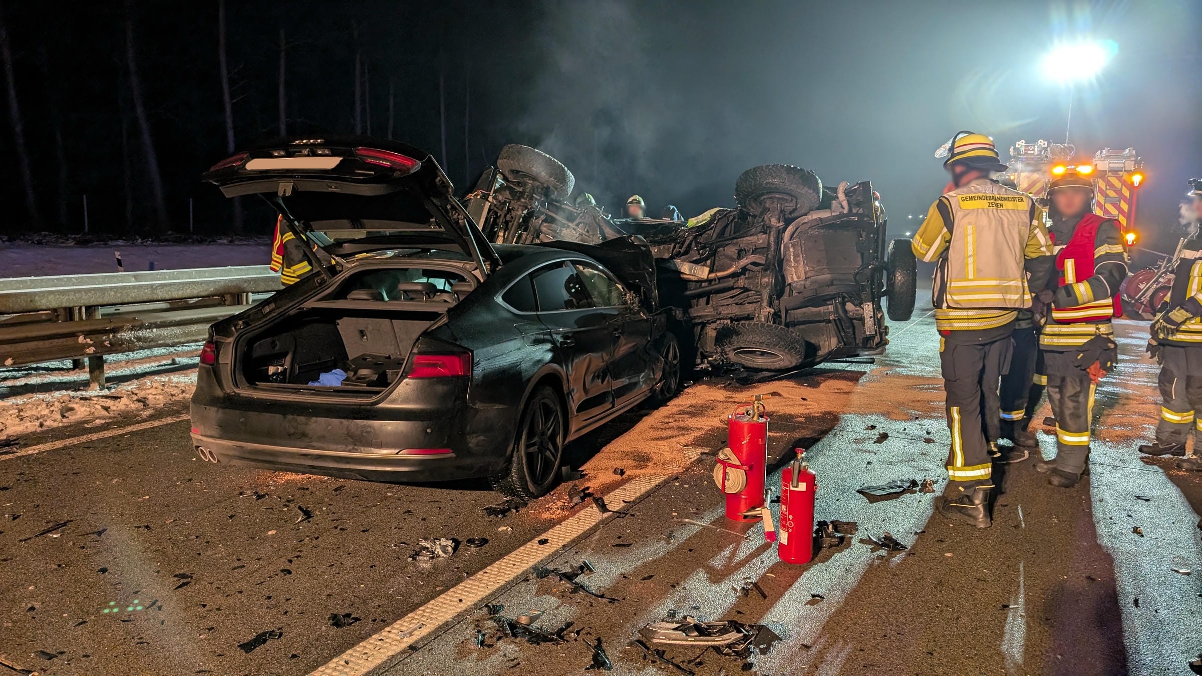 Der Fahrer des Land Rovers erlitt leichte Verletzungen, der Fahrer des Audi wurde schwer verletzt. Die Autobahn musste für die Unfallaufnahme mehrere Stunden voll gesperrt werden. Der geschätzte Gesamtschaden liegt nach polizeilicher Ersteinschätzung bei rund 65.000 Euro.