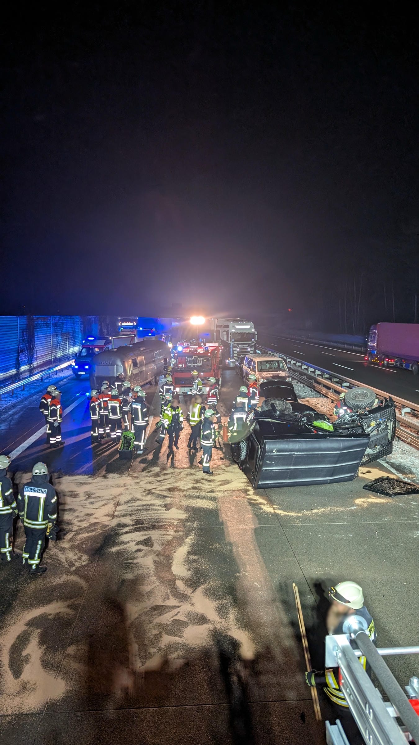 Am Abend des 05.02.2026 wurde unsere Wehr zusammen mit den Ortswehren aus Gyhum und Zeven um 21:08 Uhr zu einem Verkehrsunfall auf der BAB A1 gerufen. Zwischen den Abschlußstellen Bockel und Stuckenborstel war es in Fahrtrichtung Bremen zu einem PKW-Unfall gekommen.