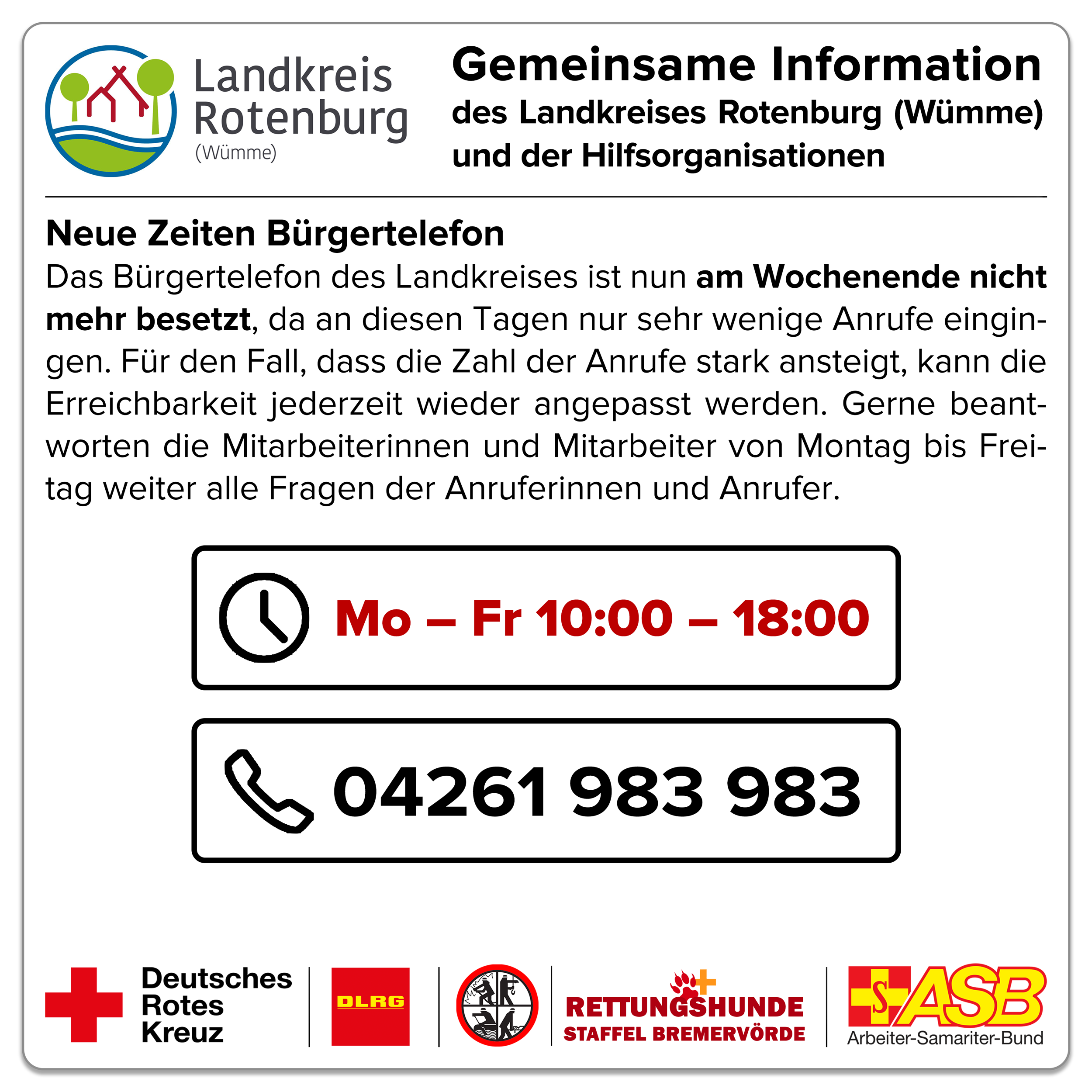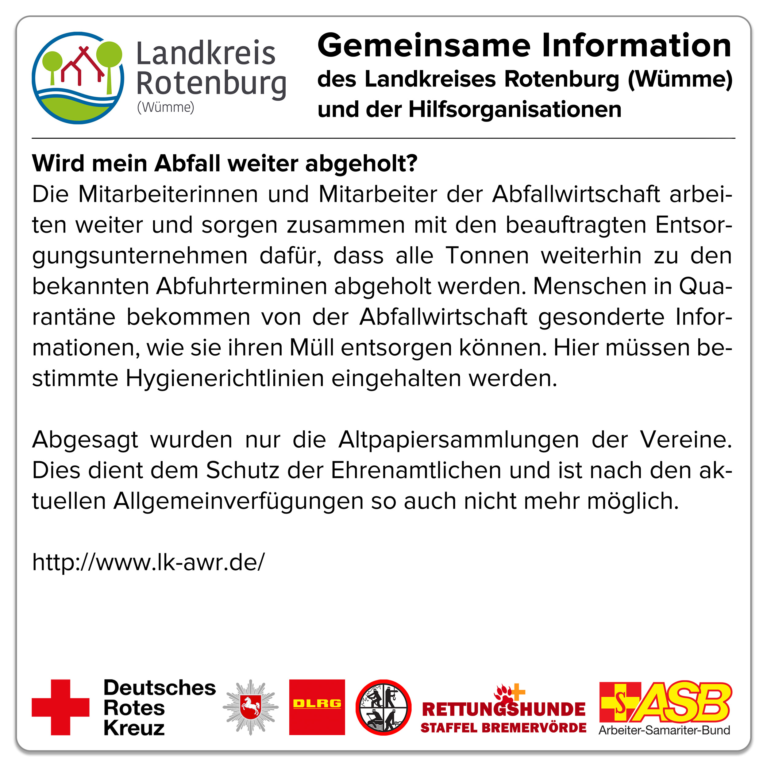 Archiv der Gemeinsamen Corona Informationen des Landkreises Rotenburg (Wümme) und der Hilfsorganisationen