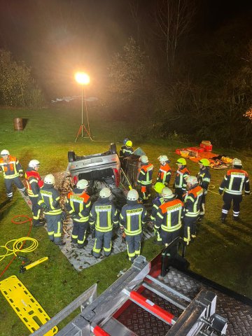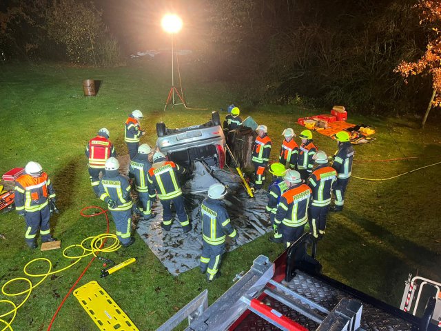 Am 14.11.2025 gab es eine gemeinsame TH - Übung mit den Kameraden aus Hetzwege. Geübt wurde ein PKW-Unfall bei dem das Fahrzeug auf dem Dach liegen zum stehen gekommen war.